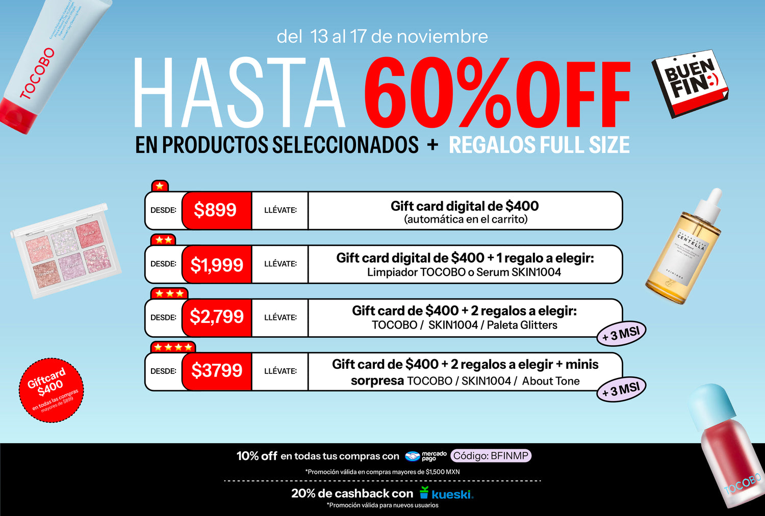 • Gift Card digital de $400 MXN (se agrega automáticamente al carrito).