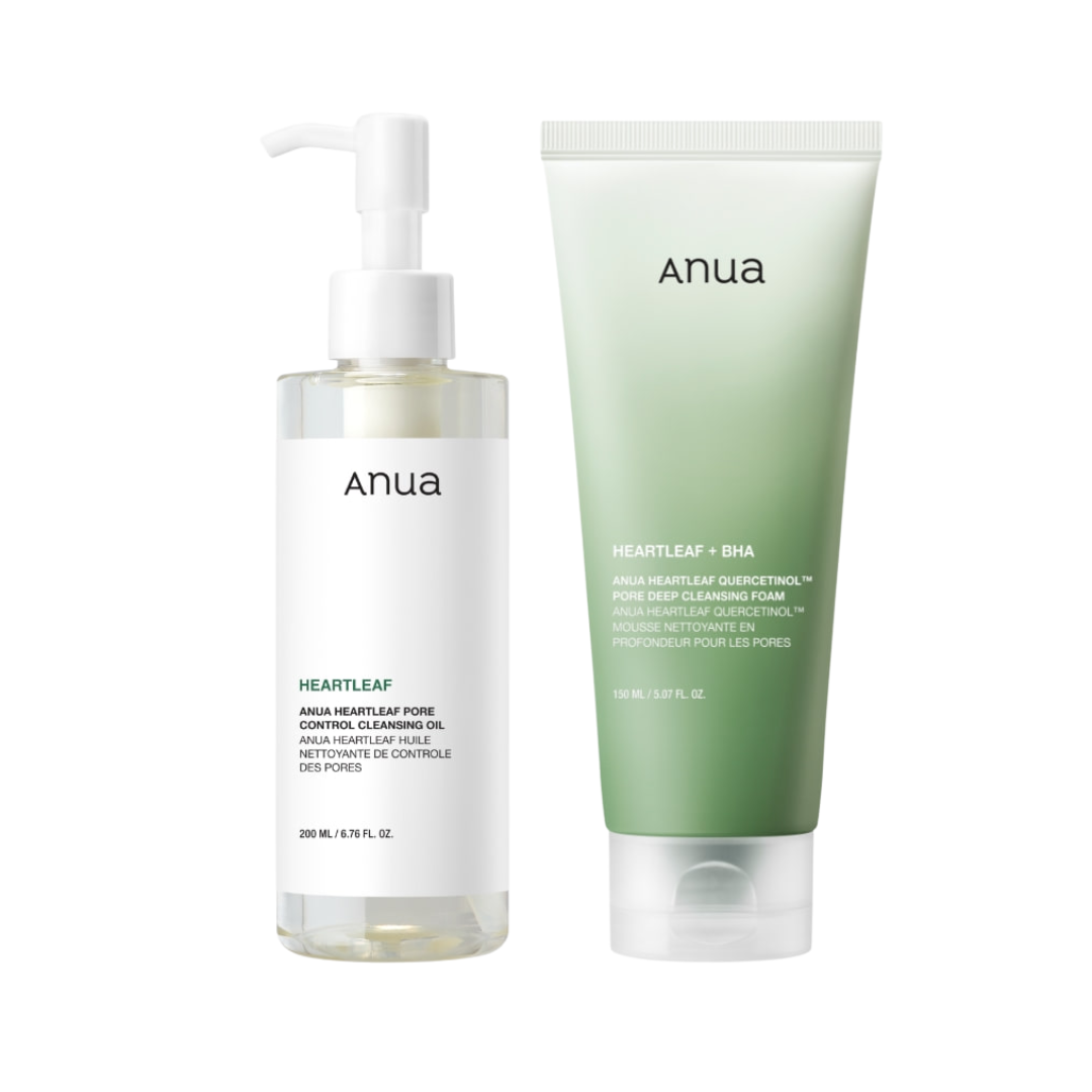 La doble limpieza es uno de los pasos más famosos del skincare coreano porque realmente cambia la textura de la piel. Este kit de ANUA combina dos limpiadores que trabajan en equipo para deshacer grasa, maquillaje, SPF y suciedad acumulada, mientras ayudan a destapar poros y prevenir puntos negros.